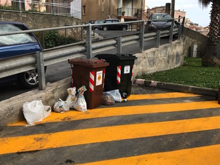 In altri casi, invece, il rifiuto è stato differenziato, ma, invece di buttare il sacchetto nel cassonetto corrispondente, si preferisce lasciarlo per strada.