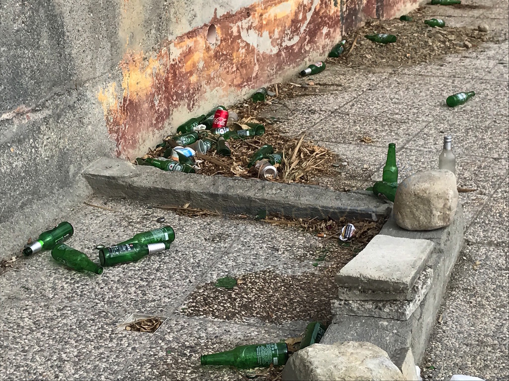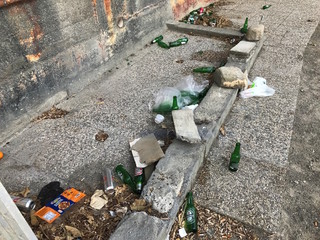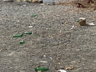 Siamo andati a verificare e, in effetti, la situazione non è delle migliori. Sporcizia, rifiuti di ogni genere, scarti di cibo e, soprattutto, un mare di bottiglie di vetro lasciate sulla spiaggia. Molte delle quali sono rotte. Non c'è la minima traccia di una pulizia e sembra che la situazione si protragga da qualche tempo.