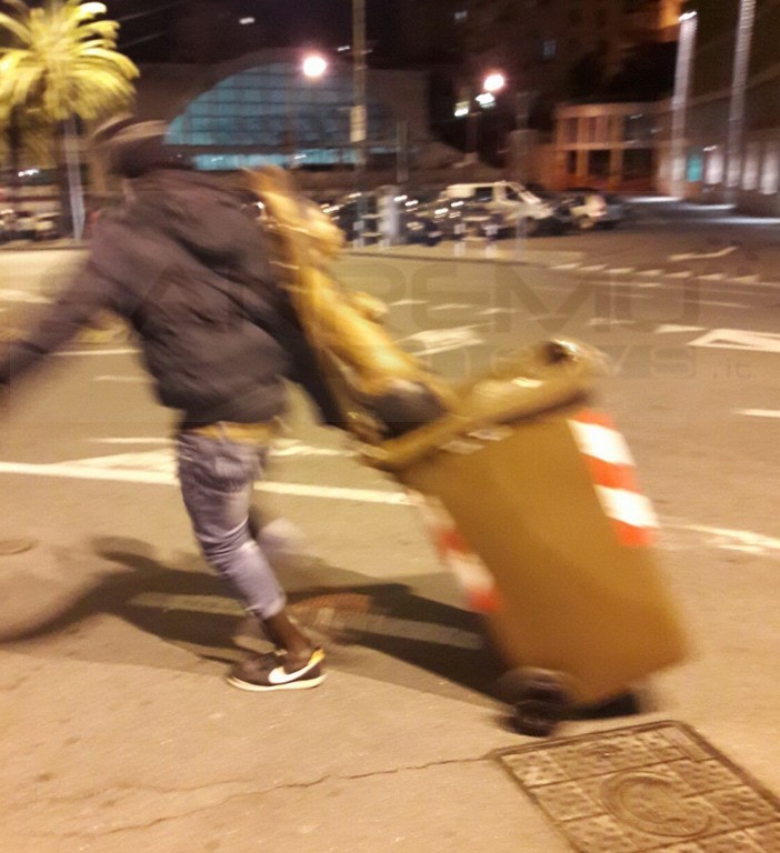 Sanremo: incredibile ma vero, due extracomunitari rubano cassonetti della differenziata in via Agosti (Foto)