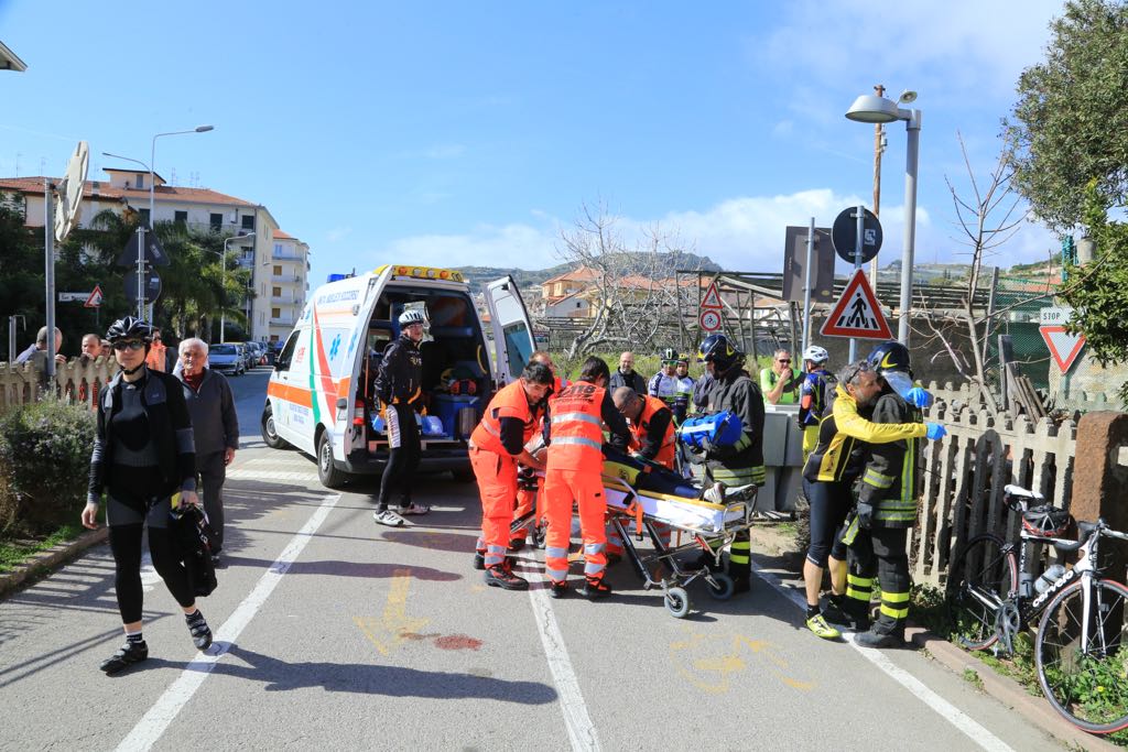 Grave incidente, questa mattina poco prima delle 13 sulla pista ciclabile, all’altezza del cimitero di Riva Ligure, in località Vigne.