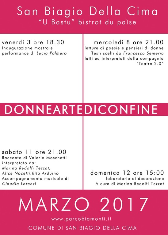 Torna la rassegna 'DonneArteDiConfine', organizzata dal Comune di San Biagio della Cima nei caratteristici locali storici de 'U Bastu'.