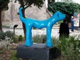 Le opere realizzate in bronzo a scala naturale dall’artista tedesca con base a Lingueglietta, evocano infatti un’atmosfera sospesa e sognante, e popolano una storia i cui protagonisti sono cani, uccelli, giullari, re e ballerine, caratterizzati da tratti essenziali e quasi infantili, con forme scomposte in un giocoso rimando al Dada. I colori sono brillanti e vivaci, dominati da un turchese intenso e “fiabesco”, decorato con dettagli dorati, e disseminati di misteriosi ed evocativi segni grafici.