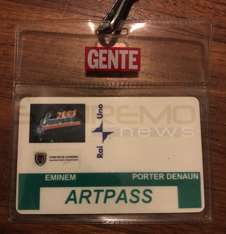 Quasi per caso ci siamo imbattuti in un’asta che, qualora dovesse andare in porto, entrerebbe di diritto nella storia del Festival di Sanremo. Su eBay è in vendita il pass di Eminem, contestatissimo ospite al Festival di Sanremo 2001 condotto da Raffella Carrà. È originale, almeno il venditore lo descrive come tale, allegando le fotografie del pass griffato Rai, Gente e Comune di Sanremo. E, per chi di pass ne ha visti tanti, sembra davvero originale.
