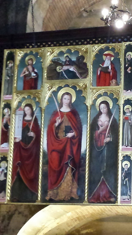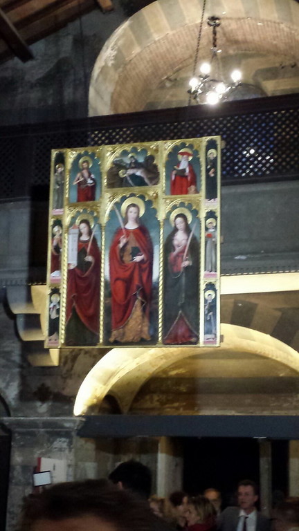 Ieri sera a Roma, con un importante ed affollatissimo evento mondano, presso la Chiesa di Santa Mèaria in Cappella dell'Ospitale Santa Francesca Romana di proprietà dei Doria-Pamphily, è stata inaugurata la mostra MEMORIE#ESTASI (aperta fino al 3 aprile) tra le cui opere esposte, al centro della chiesa, vi era la copia del Polittico di Ludovico Brea su Santa Devota. Non potendo portare qui a Roma l'originale, gli organizzatori hanno fatto realizzare una copia, identica non solo nelle dimensioni ma anche nella tecnica di realizzazione. Un risultato che ha colpito tutti i visitatori.