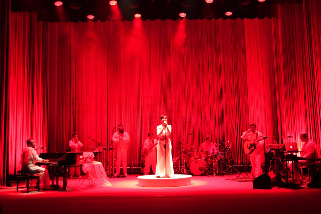 E' arrivata passando tra il pubblico vestita da sposa, è salita sul palco e ha incantato il Teatro dell'Opera del Casinò alternando i suoi grandi successi a brani meno noti, ma sempre intensi.