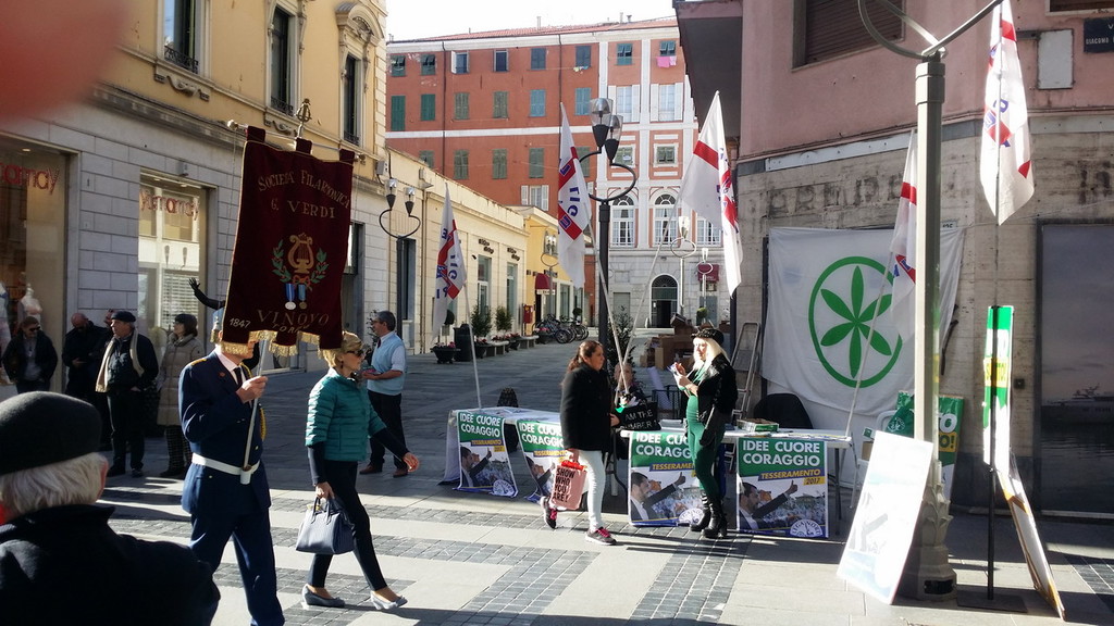 “Raccolta firme in allegria con le Bande Musicali che sfilano in centro di Sanremo. Prosegue la proposta per andare al più presto alla consultazione popolare, dopo il chiaro segnale del NO al referendum di dicembre. Ma siamo già alle porte della primavera e di votare non se ne parla... Così la Lega insiste: ‘VOTO SUBITO’!!... e la gente dimostra di gradire... con una presenza continua e motivata… che motiva ancor più anche noi militanti”.