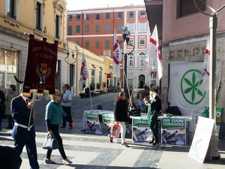 Banchetto della Lega Nord oggi a Sanremo durante la sfilata delle Bande Musicali.