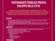 Al convengo, accreditato per l'ordine degli ingegneri, interverranno il Prof. Roberto Moro Visconti, Dottore Commercialista e revisore legale dei conti, professore di finanza aziendale presso l'univ. cattolica del Sacro Cuore di Milano, e l'Avv. Filippo Bucchi, esperto di diritto amministrativo e assistenza legale nei settore del parteneriato pubblico-privato (PPP) e degli appalti pubblici. I relatori entreranno nei dettagli della procedura, la struttura del contratto ed il patto di stabilità. Esamineranno inoltre alcuni settori di interesse come efficienza energetica, smart city, riqualificazione urbana, pubblicità e mobilità elettrica, infrastrutture e scuole. Il programma prevede la registrazione dei partecipanti alle 9.30 e l'inizio dei lavori alle 9.45. I lavori si chiuderanno alle 13.00.
