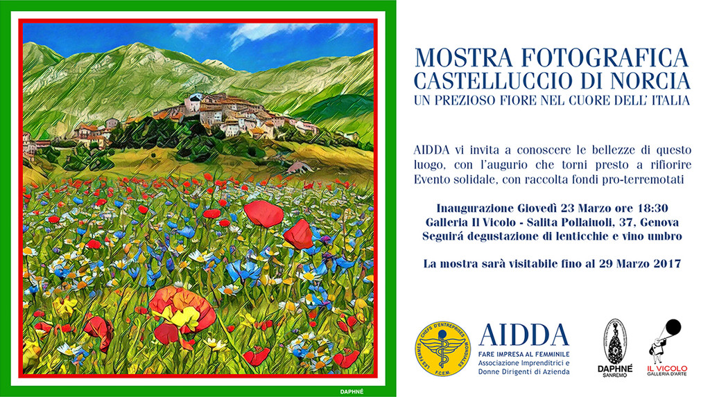 “La nostra è un’associazione di Donne Imprenditrici e Dirigenti d’Azienda Italiane, che partecipa al ‘Femmes Chefs d’Entreprises Mondiales’, organizzazione a livello mondiale – commenta Claudia Torlasco, Vicepresidente Nazionale AIDDA. - L’Associazione ha lo scopo, tra l’altro, di difendere i diritti delle donne Imprenditrici e delle imprese famigliari in generale. Proprio in questo drammatico frangente, in cui molte attività nelle regioni Umbria-Marche-Abruzzo sono state irrimediabilmente danneggiate dal terremoto, le Socie di Aidda si sentono chiamate a portare il proprio contributo. In particolare, oltre ad aiutare l’imprenditoria femminile delle zone colpite, cosa che si sta realizzando, si vuole contribuire a sottolineare come questo meraviglioso territorio non possa essere dimenticato, ma debba essere aiutato a risollevarsi anche nella memoria, per le sue bellezze, rappresentate dalle sue splendide fioriture”.