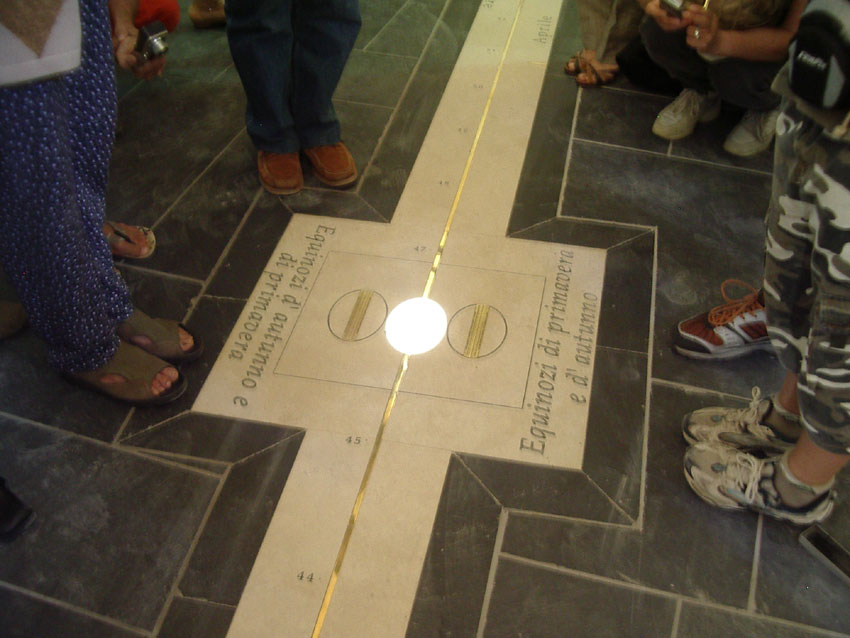"La mattinata inizierà con le osservazioni astronomiche ai telescopi e le animazioni sul percorso apparente del Sole; quindi il Coro dei Troubar Clair, che da anni accompagna molte delle manifestazioni solari di Stellaria, in attesa del mezzogiorno solare - alla Visitazione è alle ore 12:37'02" - per osservare il transito del Sole sulla linea; la linea meridiana, ideata e realizzata da Stellaria e inaugurata al solstizio di dicembre 2007, presenta nella piastra degli equinozi un particolare dispositivo - opera e calcoli, anche di tutta la linea, di uno dei nostri associati G.Bonini - che permette di conoscere il momento degli equinozi, cosa che nel passato, per l'equinozio di primavera, è stata di fondamentale importanza, per fissare la data della Pasqua. - sottolineano da Stellaria - Si tratta di un dispositivo unico, funzionante e preciso; solo alla Meridiana di Santa Maria degli Angeli a Roma (del 1701) esiste una cosa simile, a cui evidentemente ci siamo ispirati, ma attualmente non in uso".
