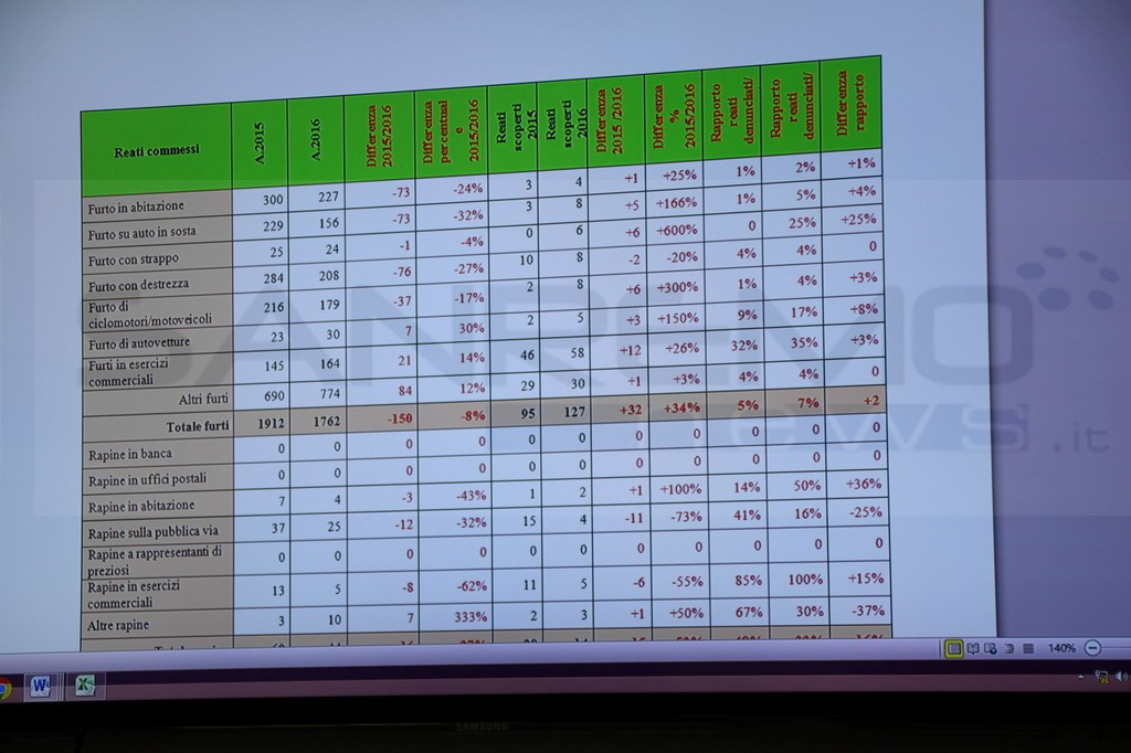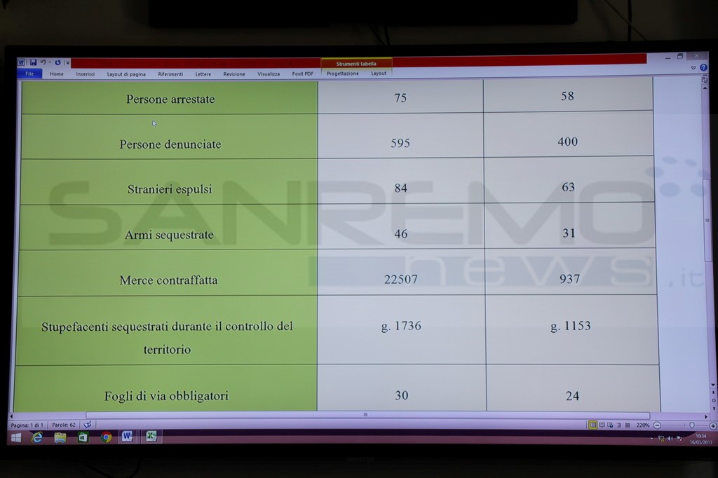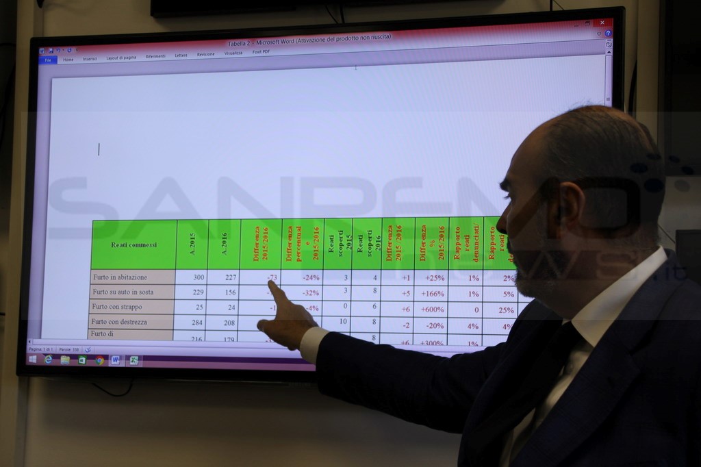 Nel corso del 2016, anno di svolgimento dell’operazione Senza fretta, senza tregua, il totale di tutti i reati commessi nel comune di Sanremo è diminuito dell’8%. Ecco i dati operativi di tutta l’operazione e i dati che mettono in luce il positivo effetto della stessa sull’andamento della criminalità nel comune matuziano nel 2016 confrontati con quelli del 2015.