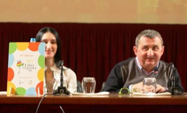 Marzia Taruffi, responsabile Ufficio Stampa del Casinò e Claudio Porchia, presidente Associazione Ristoranti della Tavolozza hanno condotto l’incontro con Stefano Bicocchi in arte Vito e Elisa Caimi, che hanno ricevuto dal consigliere del CdA, Olmo Romeo, le targhe di “Libri da Gustare 2017” per le opere "Vito con i suoi” Edizioni Gambero Rosso e "Il rovo di bosco. Racconti e ricette per i sensi e per l'anima” ed. Eventualmente