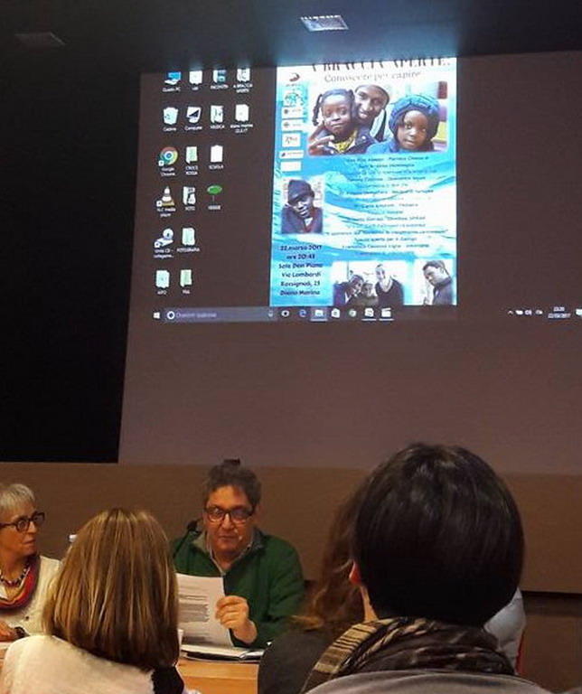 Ieri sera, presso la sala Don Piana di Diano Marina si è tenuta una conferenza sull'accoglienza migranti organizzata da A.I.FO e Mappamondo, in collaborazione con l'Arci Prov.le, Apertamente, la Caritas Albenga-Imperia e la Caritas Sanremo-Ventimiglia ed Intersos. Tra i vari relatori erano presenti oltre a Susanna Bernoldi, Coordinatrice Aifo e Chiara Bianchi socia Mappamondo, organizzatrici dell'evento, anche: Don Rito Alvarez, Parroco della Chiesa di Sant'Antonio di Ventimiglia, Daniela Zitarosa, Operatrice legale, Dr. Filippo Dematheis, medico di famiglia, Dr. Carlo Amoretti, pediatra, Roberto Corradi, Direttore SPRAR, Francesca Casassa Vigna, volontaria e alcuni rappresentanti di cooperaive locali come Il Faggio, Progest e La Goccia.