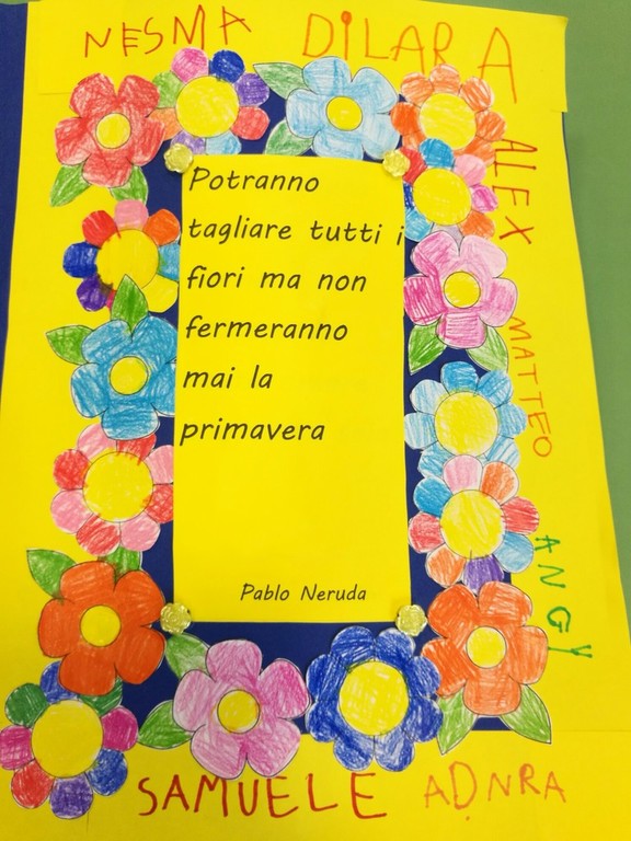 Ai bambini inoltre sono state proposte le parole del poeta Pablo Neruda che ebbe a dire: “Potranno tagliare tutti i fiori ma non fermeranno mai la primavera”.