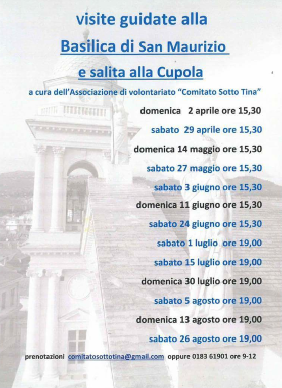 Dopo i lavori di restauro, curati dall'Architetto Cristina Tealdi, sabato alle 15, riapre al pubblico la cupola della Basilica di San Maurizio ad Imperia con una visita guidata