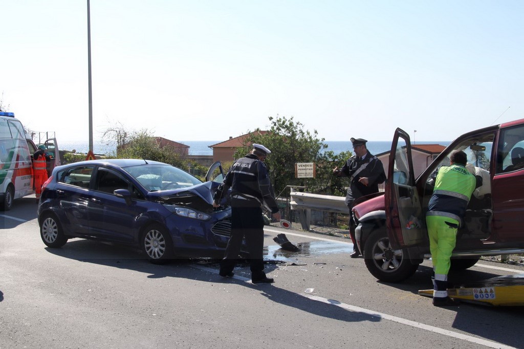 Scontro frontale tra due auto, questa mattina poco dopo le 10 sulla statale Aurelia a Santo Stefano al Mare, a pochi metri dal bivio per Terzorio.
