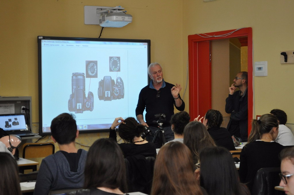 E' stato il primo di 4 incontri e ha coinvolto 54 studenti che hanno partecipato volontariamente al corso, mostrando grande interesse, ponendo domande ed esponendo perplessità, alcuni dei quali prendevano anche appunti. La prima lezione verteva sul ‘post produzione’, ovvero l’utilizzo della macchina fotografica e delle nozioni fondamentali da conoscere, un’infarinatura iniziale per dare le basi ad un principiante. A tenere il corso sono stati: Valter Coddi e Vincenzo Giuliani, accompagnati da una degli organizzatori Serena Burlando.