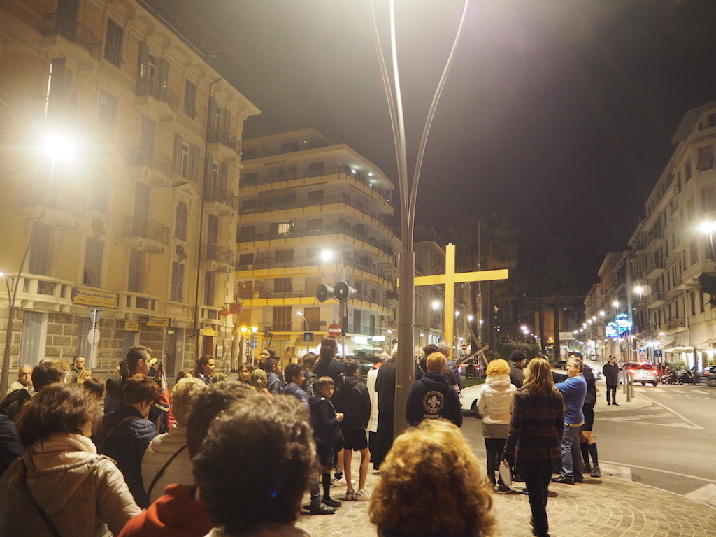 Si è svolta questa sera a Sanremo la Via Crucis diocesana. Un rito partecipato che ha preso il via da Pian di Nave. Seguendo la croce, i fedeli hanno percorso una parte del centro cittadino fino a raggiungere la cattedrale di San Siro.