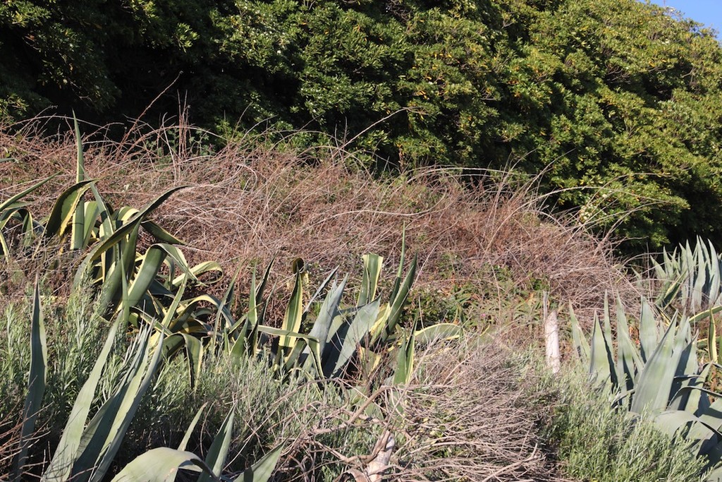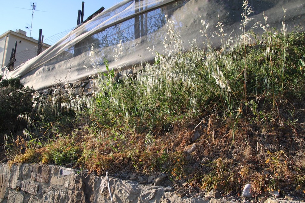 Nella nostra breve escursione abbiamo notato faretti non funzionanti e coperti dalla vegetazione, rigogliosa dopo mesi e mesi senza il minimo intervento della falciatrice. Nella zona dei ‘Tre Ponti’, un tempo, c’erano dei faretti coreografici che sparavano la luce proprio sotto i ponti dell’Aurelia che danno il nome alla zona. Uno spettacolo di luce che si vedeva anche dal porto. Ma non ci sono più. Molto probabilmente qualcuno se li è rubati, come testimoniano le viti rimaste lì all’aria e i cavi tranciati.