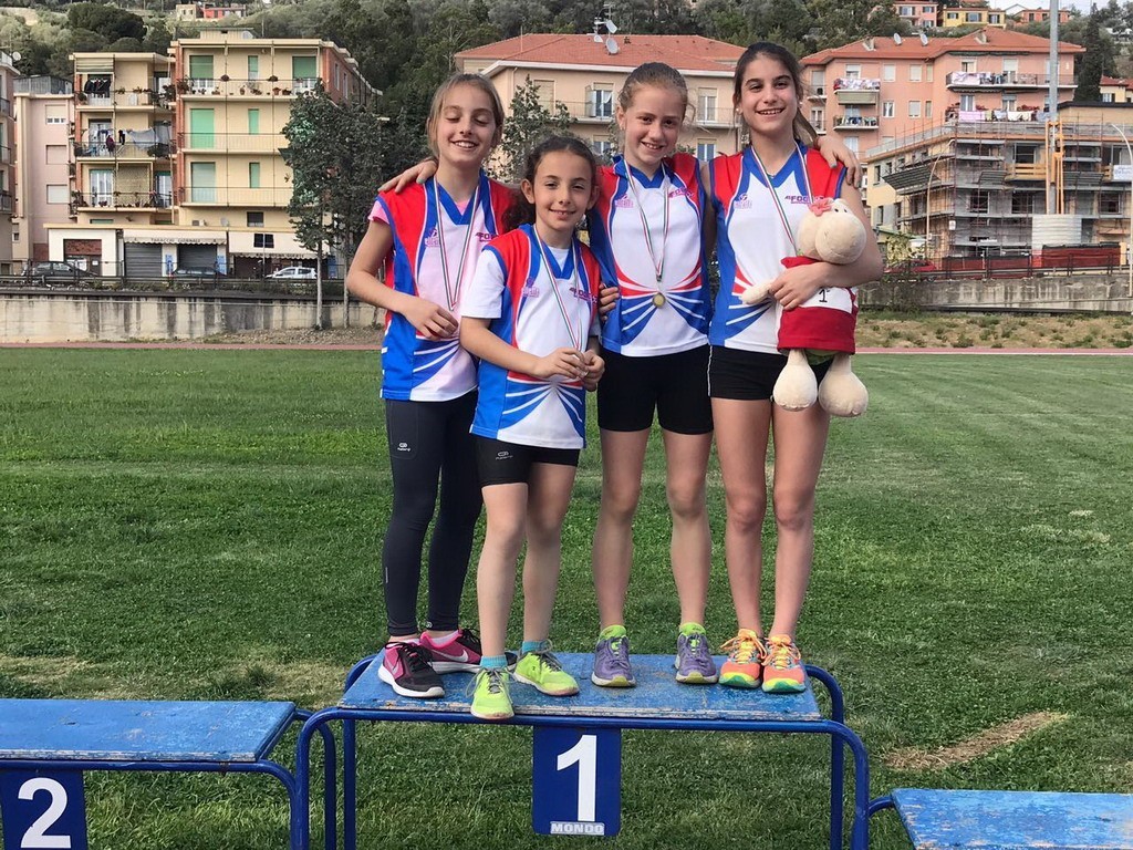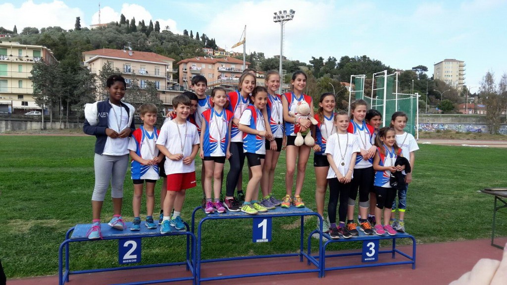 In campo femminile,l a Foce,supportata dall'entusiasmo di Sabrina, si è rivelata più brava e ricca di bambine con attitudini; nella velocità m.50 duello con la Maurina: la focina Marta Paonessa si è imposta con lo stesso tempo della imperiese Chiara Briguglio, terza Aurora Anselmi e quarta Linda Bonacini; ancora Paonessa nel salto in lungo(m.3,63) davanti alla compagna di squadra Bonacini); successo della Foce anche nella staffetta 4x50m. con ancora la Paonessa, la Bonacini, Bruzzone e De Cristofaro. In campo maschile sfida tra Francesco Brezzo (Maurina)e il focino Emanuel Bashmeta nei m.50:7"8 per entrambi. Il ventimigliese Massimo Megiovanni ha vinto il salto in alto e la Maurina la staffetta 4x50. Nelle gare degli esordienti B, 2a/3a elementare: nei m.50 femm. stesso tempo per Sara Ciravegno (Foce) e Matilde La Marca (S.Stefano)