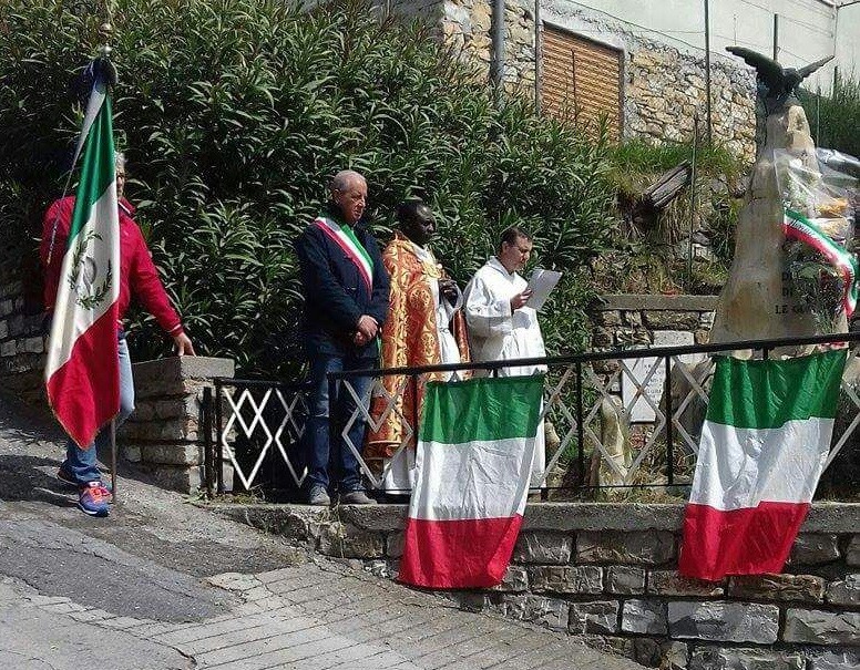 Dopo la Santa Messa presso la Chiesa parrocchiale si è snodata la processione sino al monumento dei caduti, dove sono stati deposto un mazzo di fiori, con il Parroco ed il Diacono che hanno pregato per i caduti di tutte le guerre ed hanno effettuato la benedizione.