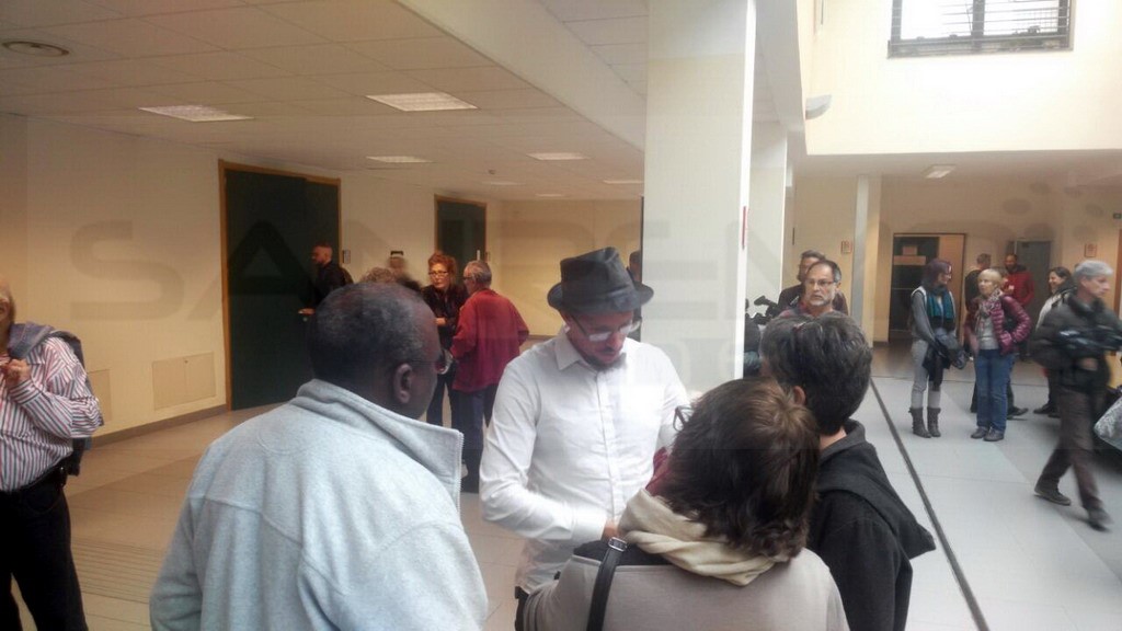 L’attivista ‘No Border’ Felix Croft è arrivato in tribunale d Imperia. Con lui una ventina di amici e attivisti che lo accompagnano ad ogni udienza.