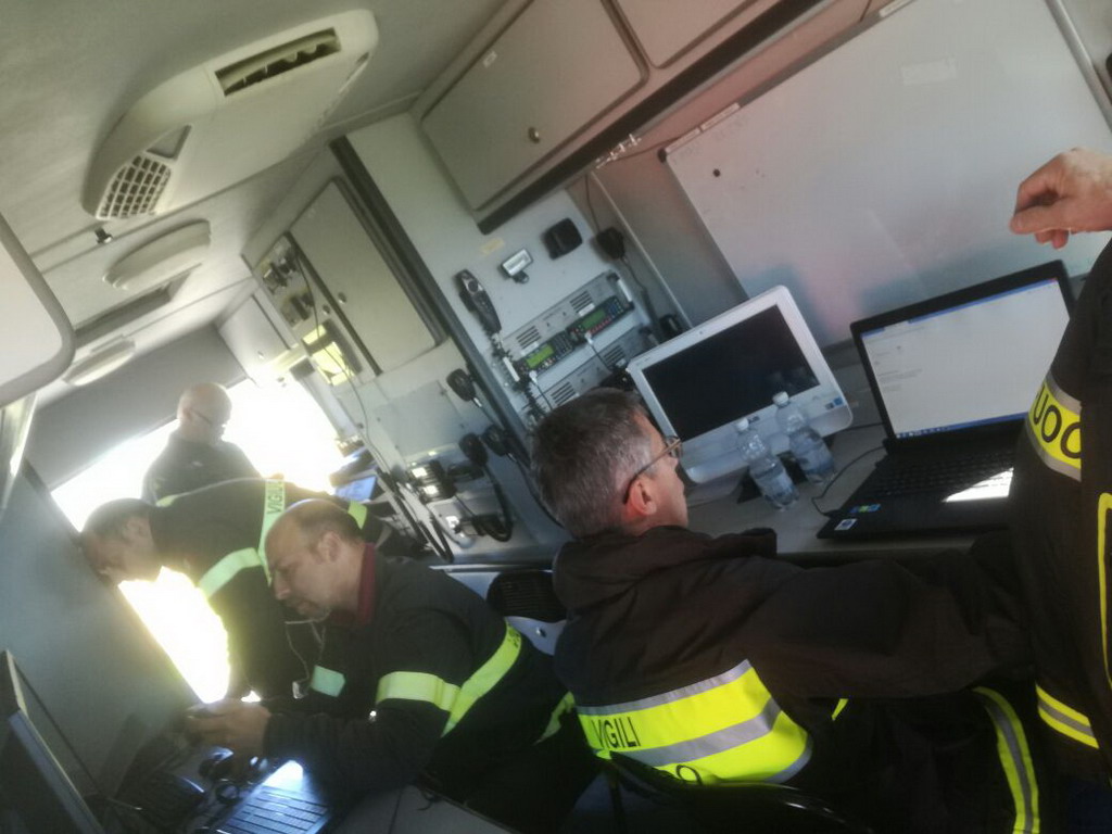 Ieri l’esercitazione prevedeva la simulazione di un incendio boschivo, mentre oggi è prevista una ricerca di persone scomparse.