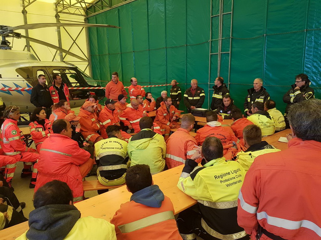 Due giorni dedicati a situazioni di emergenza, con location Cian Zerbu e come base l'eliporto di Imperia, che hanno seguito un fitto programma. Sabato ha avuto luogo l'esercitazione Aib con spegnimento di un incendio simulato, il Debriefing con i VVF e la lezione di primo soccorso con CRI e CB. Ieri la dimostrazione si è concentrata sull'esercitazione di ricerca persone e nello smontaggio "campo" base eliporto con "visita" mezzi e attrezzature in dotazione a tutte le altre squadre.