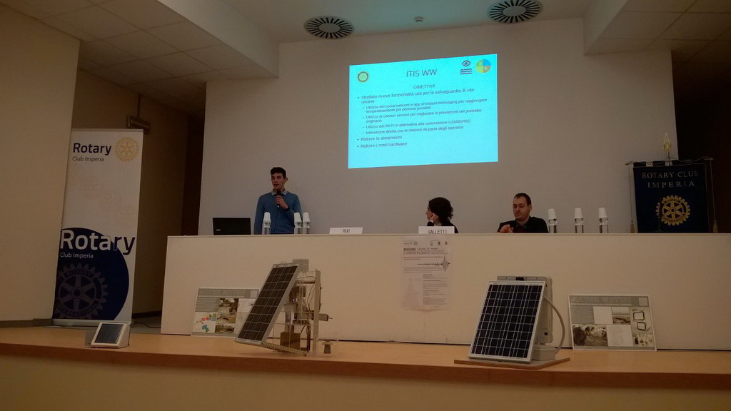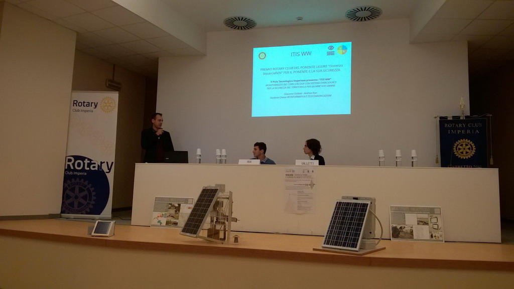Sono Giacomo Galletti e Andrea Ruo, studenti della VB indirizzo Informatica & Telecomunicazioni dell’ITIS di Imperia, i vincitori del premio "Fiorenzo Squarciafichi per il Ponente e la sua sicurezza” bandito dai Rotary Club del ponente ligure. Gli studenti, accompagnati dai docenti tutor del progetto Ing. Simone Zanella e Giuseppe Murzio, sono stati premiati ieri all’Auditorium del Museo Navale di Imperia all’interno del Convegno sul Rischio Sismico ed Idrogeologico promosso e organizzato dal Rotary Club Imperia.