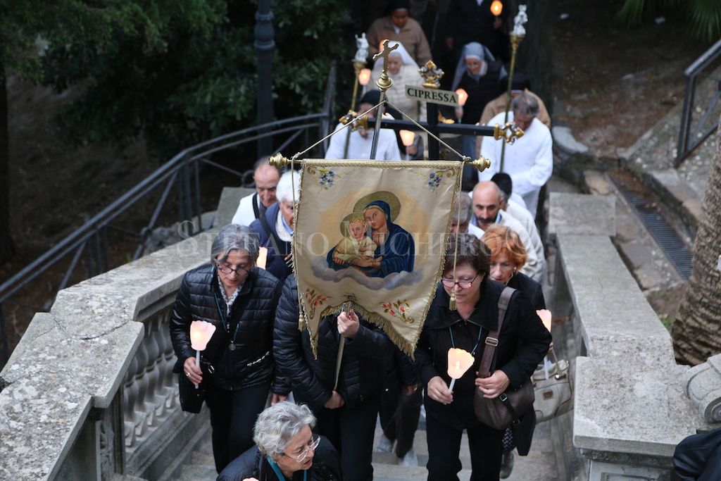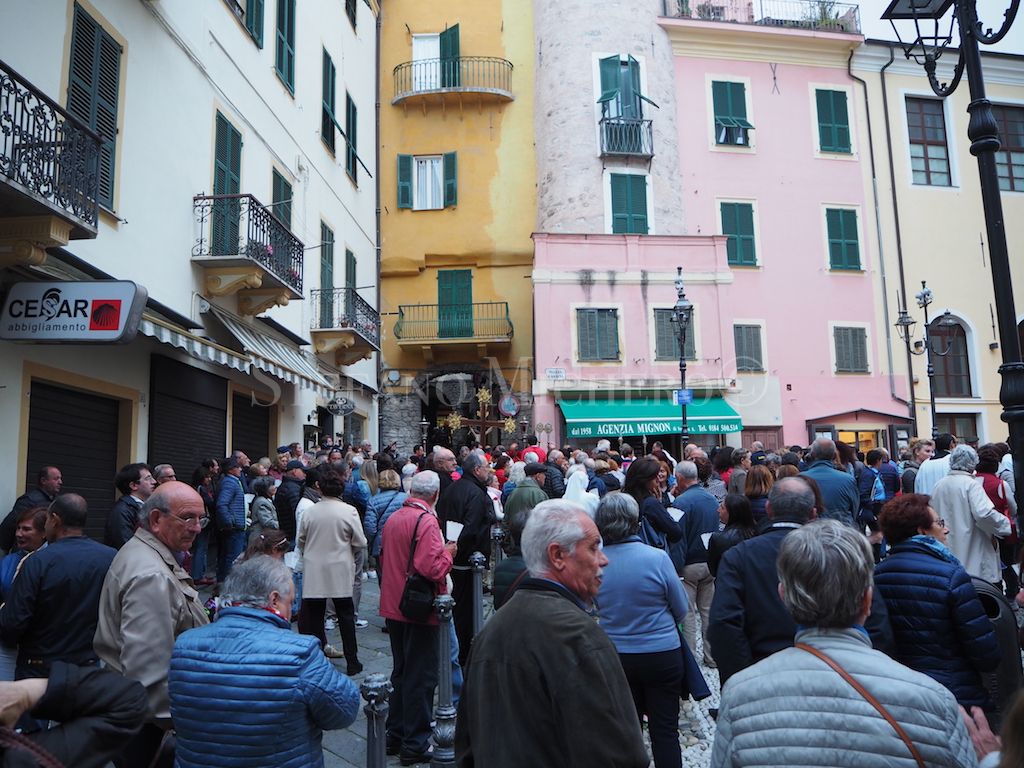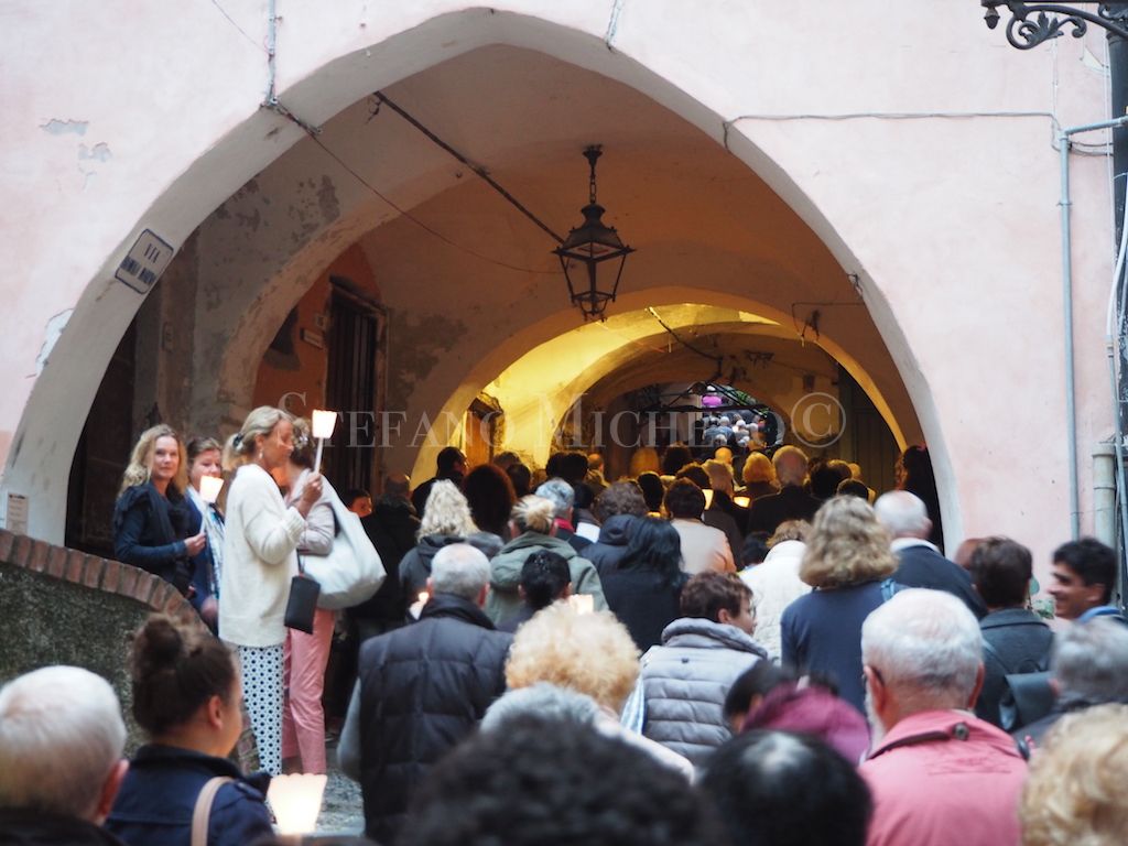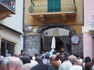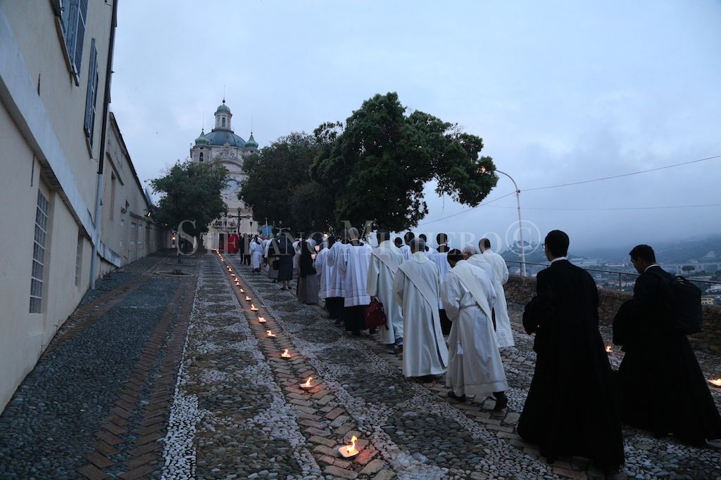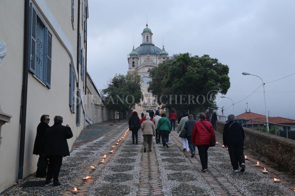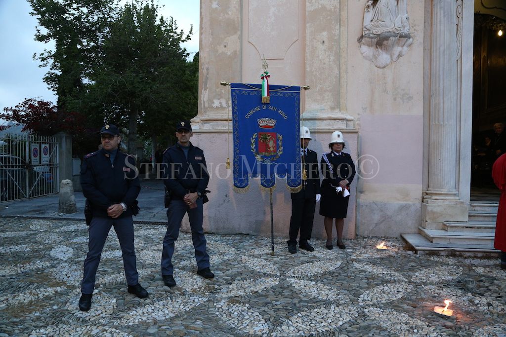 I fedeli si sono ritrovati in piazza Cassini e hanno raggiunto il Santuario a piedi colorando il cuore della Pigna con le luci dei flambeaux. Una processione suggestiva, tra candele e cori, organizzata nel minimo dettaglio, sotto l’importante presidio degli agenti del Commissariato di Polizia, della Polizia Municipale, dei Carabinieri e la Guardia di Finanza.