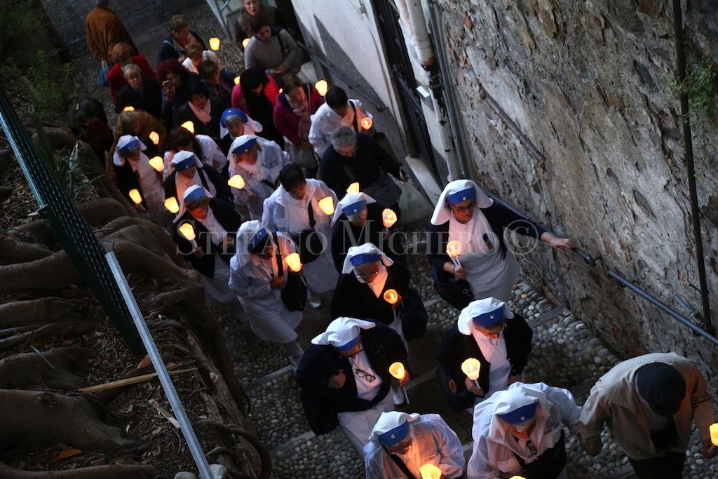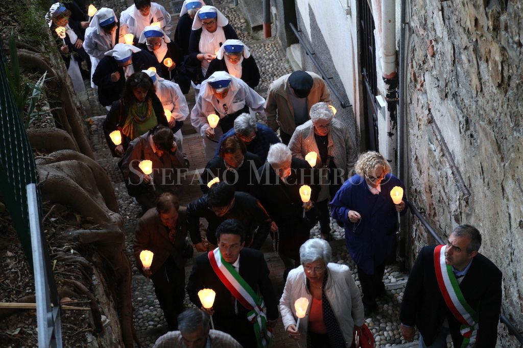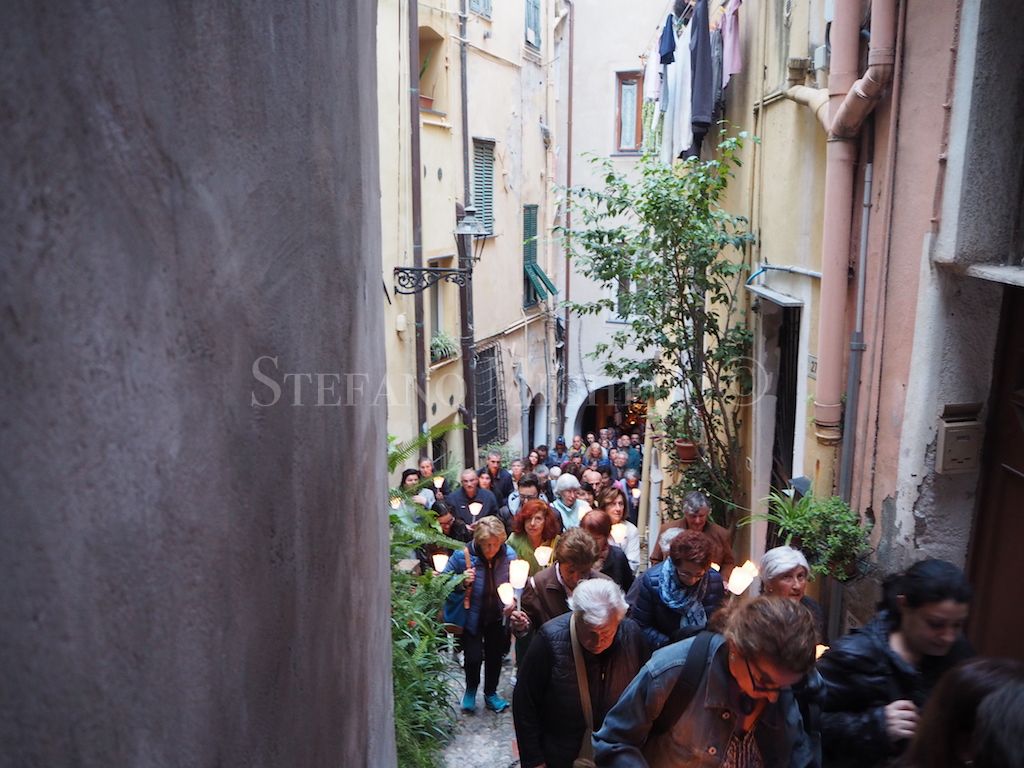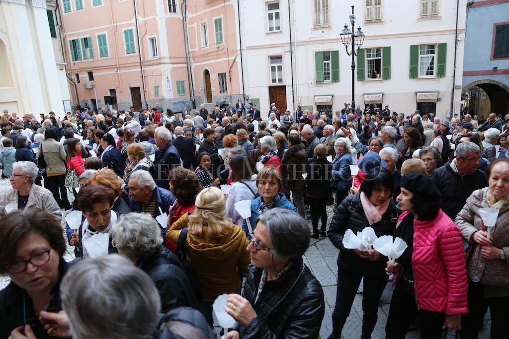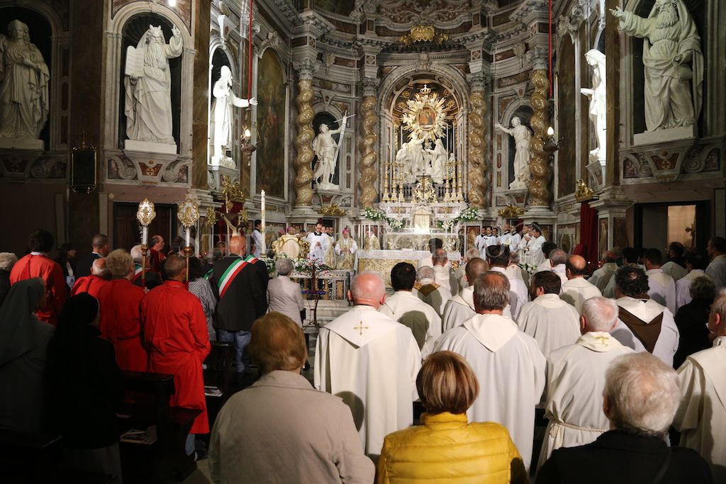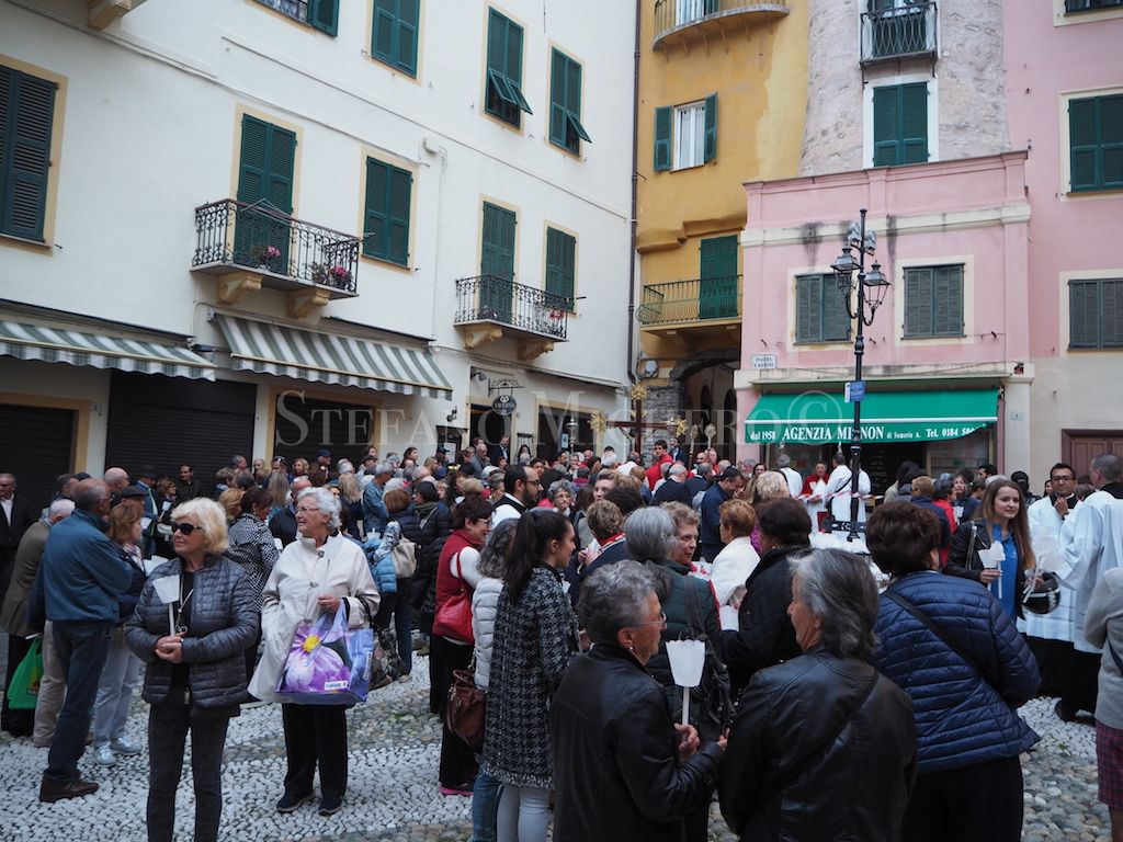 I fedeli si sono ritrovati in piazza Cassini e hanno raggiunto il Santuario a piedi colorando il cuore della Pigna con le luci dei flambeaux. Una processione suggestiva, tra candele e cori, organizzata nel minimo dettaglio, sotto l’importante presidio degli agenti del Commissariato di Polizia, della Polizia Municipale, dei Carabinieri e la Guardia di Finanza.