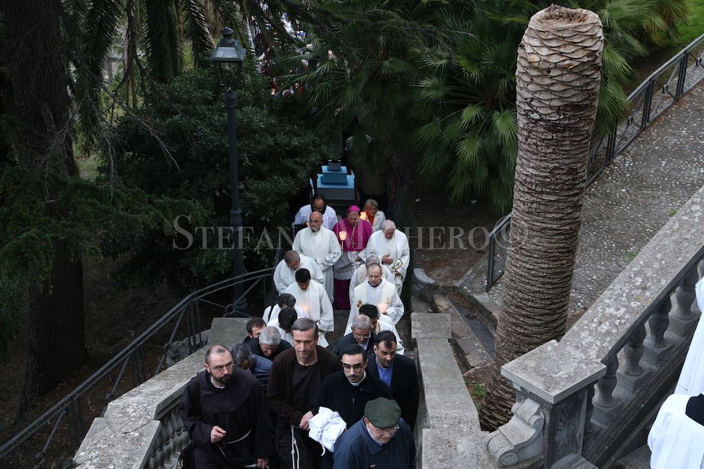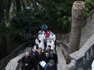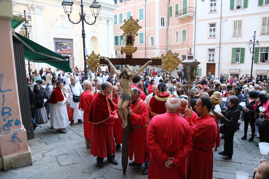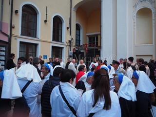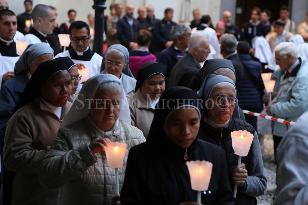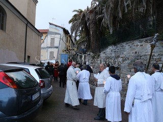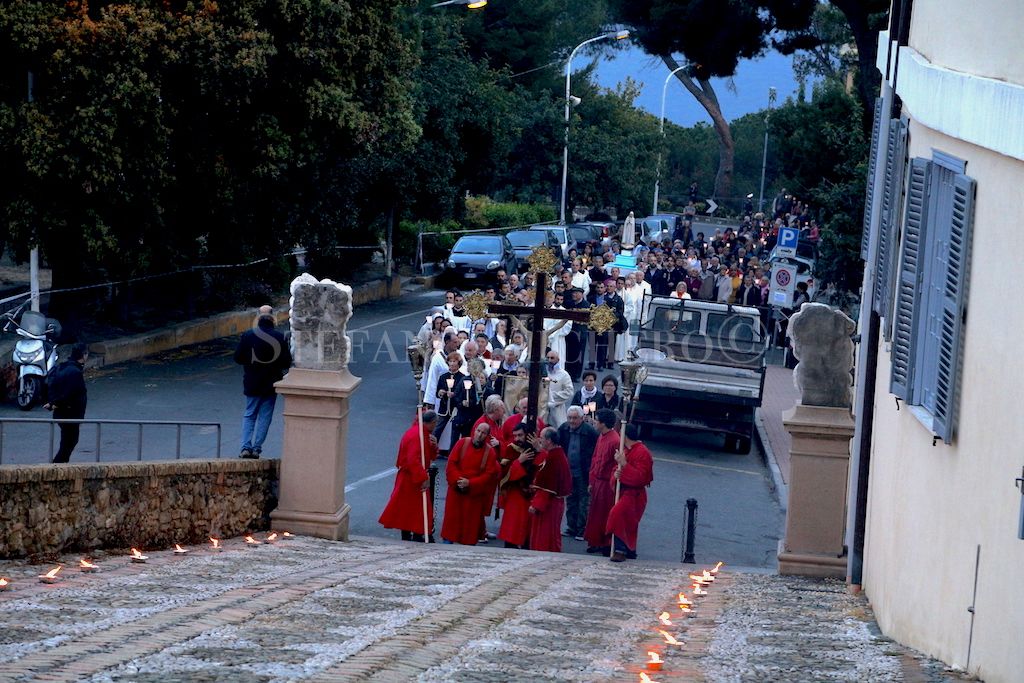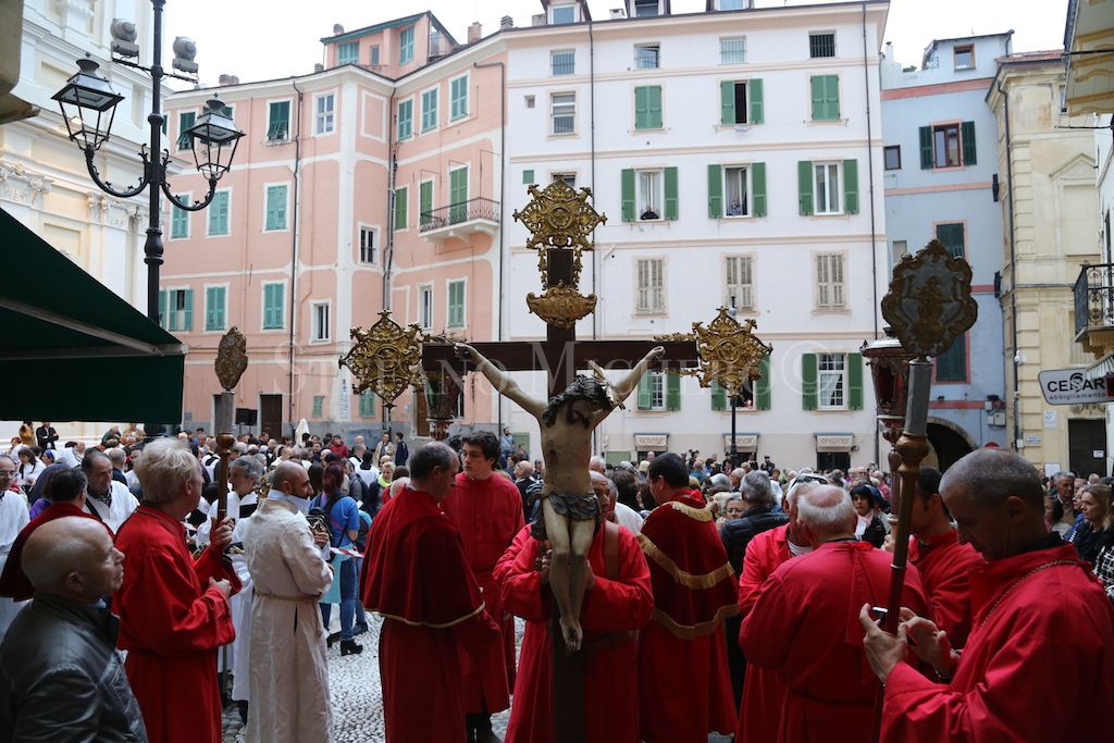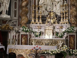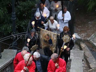 I fedeli si sono ritrovati in piazza Cassini e hanno raggiunto il Santuario a piedi colorando il cuore della Pigna con le luci dei flambeaux. Una processione suggestiva, tra candele e cori, organizzata nel minimo dettaglio, sotto l’importante presidio degli agenti del Commissariato di Polizia, della Polizia Municipale, dei Carabinieri e la Guardia di Finanza.