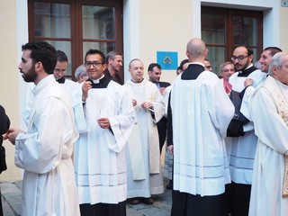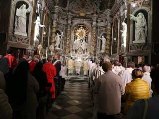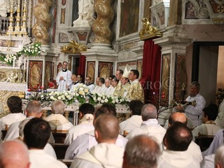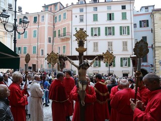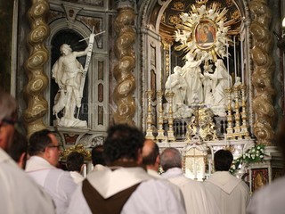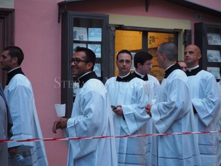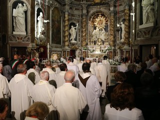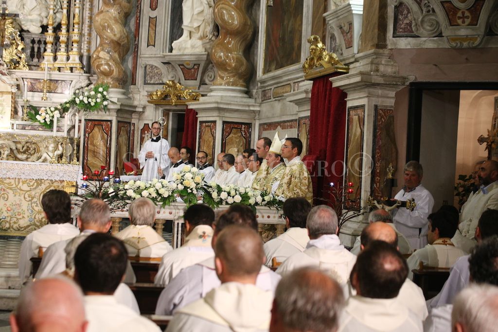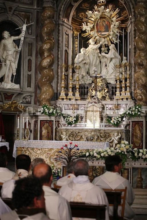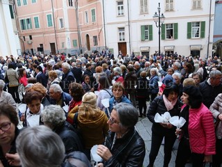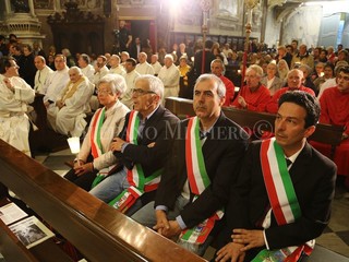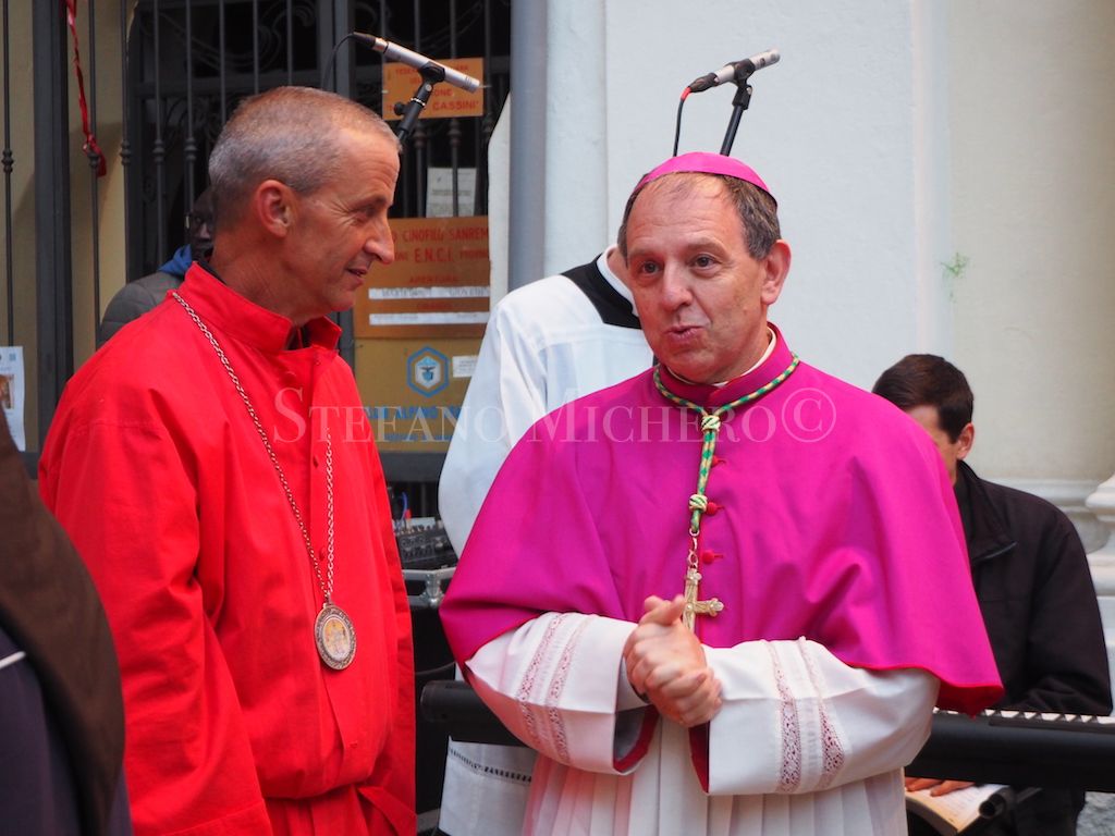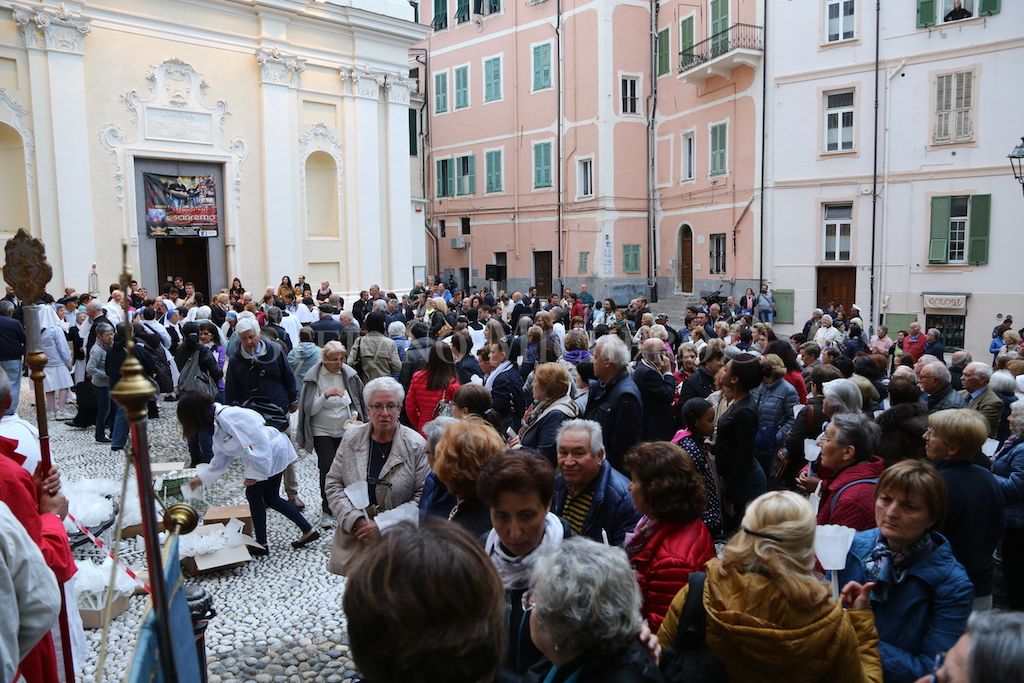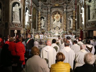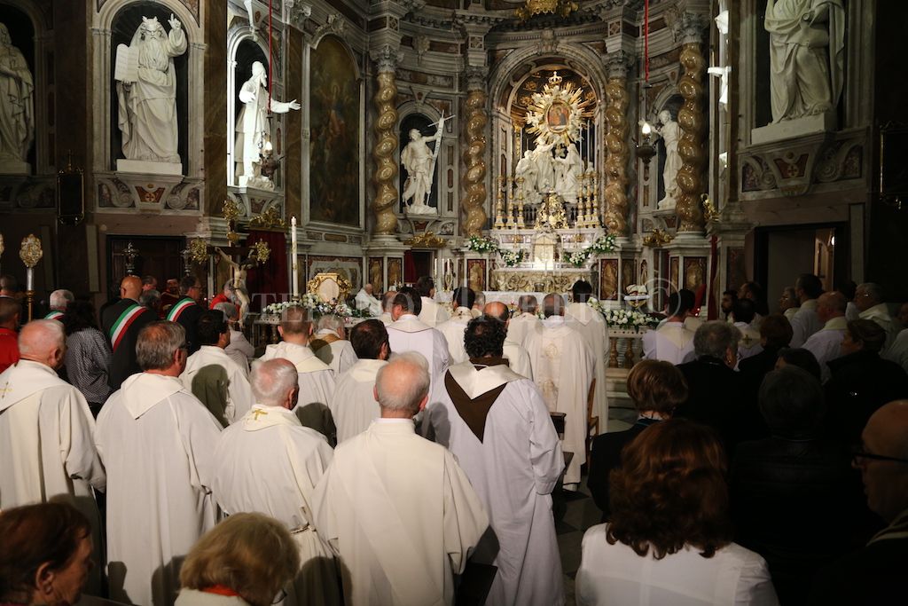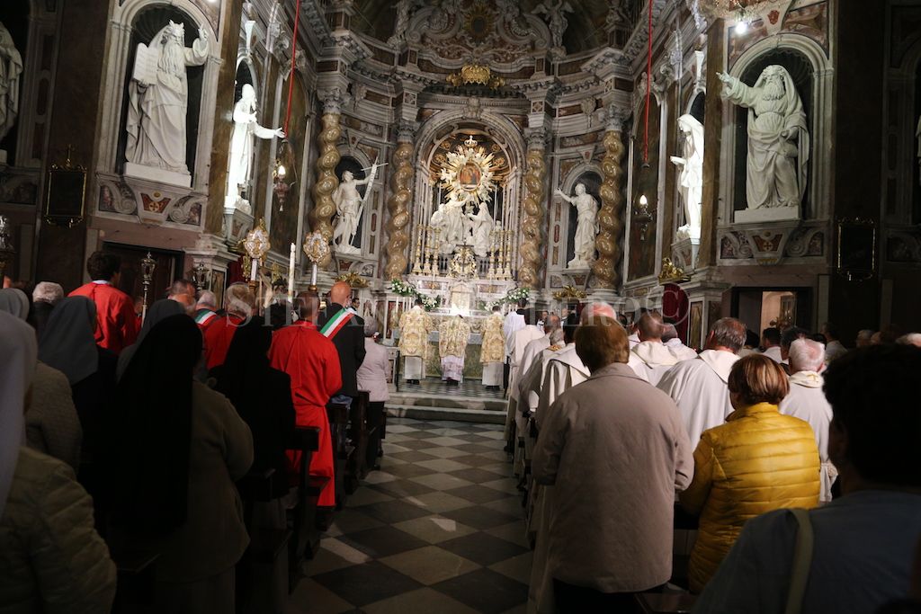 In un Santuario gremito oltre ogni aspettativa, si è svolta la celebrazione solenne dell’Eucarestia presieduta dal Vescovo Antonio Suetta, davanti ai sindaci dei comuni della Diocesi, tra i quali anche il primo cittadino sanremese Alberto Biancheri e assessori. I fedeli rimasti all’esterno, hanno potuto assistere alla celebrazione, animata dalla Cappella Musicale diocesana, grazie ad un maxischermo e i posti a sedere appositamente allestiti.