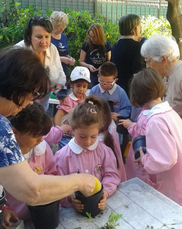 Il progetto intergenerazionale di lettura e altre attività didattiche ha coinvolto i bambini di 5 anni della scuola e gli utenti del centro sociale ricreativo per anziani Carpe Diem. Nelle giornate di martedì e mercoledì si sono tenuti i laboratori di lettura, pittura, manipolazione e giardinaggio.