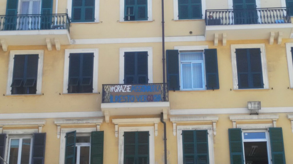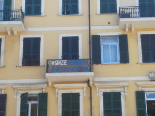 Questa mattina, da un terrazzo di piazza Dante ad Imperia è comparso uno striscione dove c'è scritto 'Grazie Assonautica, il resto è vergogna', dove è evidenziato 'Go'. Ovviamente non si sa chi abbia apposto lo striscione ed indagini sono in corso.
