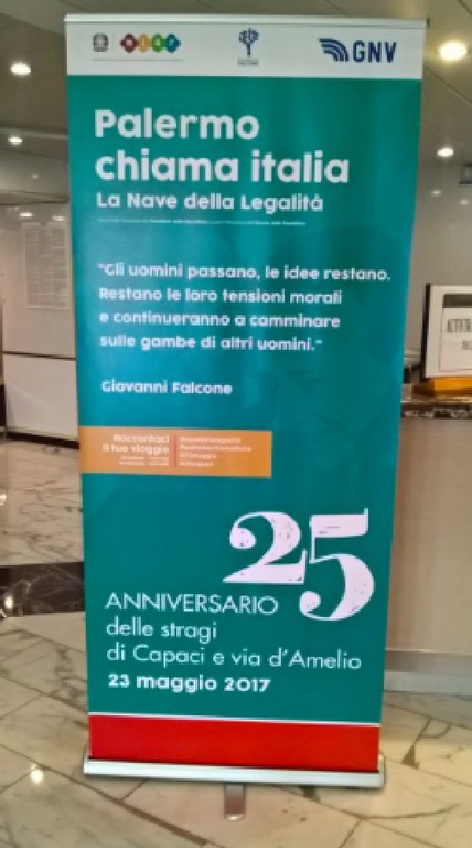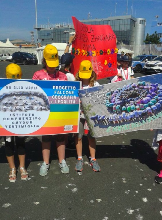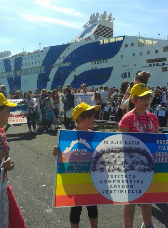 “Palermo chiama Ventimiglia, Ventimiglia risponde NO alla MAFIA.” Sono partite con questo spirito le quattro bambine dell'Istituto Comprensivo Cavour di Ventimiglia che in queste ore, accompagnate dalla dirigente Antonella Costanza e dall'insegnante Miriam Barbero, si stanno imbarcando sulla Nave della Legalità che domani arriverà a Palermo per la commemorazione della strage di Capaci. Ieri l'arrivo a Civitavecchia, quest'oggi l'imbarco sulla nave che le porterà in Sicilia per partecipare alla manifestazione organizzata per i 25 anni dalla morte di Giovanni Falcone.
