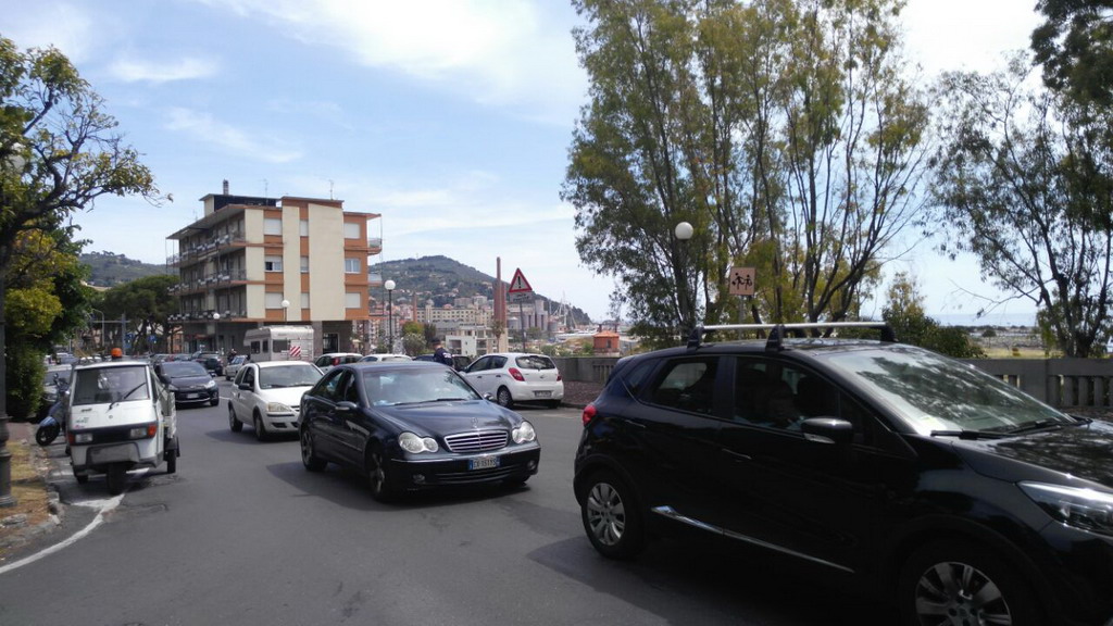 Imperia: sversamento di olio questa mattina di fronte al Comune, un piccolo incidente e lunghe code (Foto)