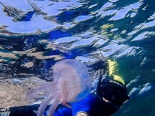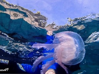 Per la sua straordinaria bellezza oggi l'ha fotografata Marcello Nan nel golfo dianese. Le sue dimensioni (a dispetto del selfie che la mette in primo piano) non superano quelle di un pugno, ma è bene evitarla.