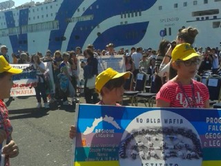 “Palermo chiama Ventimiglia, Ventimiglia risponde NO alla MAFIA.” Sono partite con questo spirito le quattro bambine dell'Istituto Comprensivo Cavour di Ventimiglia che in queste ore, accompagnate dalla dirigente Antonella Costanza e dall'insegnante Miriam Barbero, si stanno imbarcando sulla Nave della Legalità che domani arriverà a Palermo per la commemorazione della strage di Capaci. Ieri l'arrivo a Civitavecchia, quest'oggi l'imbarco sulla nave che le porterà in Sicilia per partecipare alla manifestazione organizzata per i 25 anni dalla morte di Giovanni Falcone.