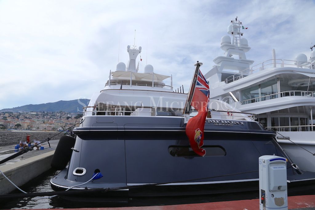 Sanremo è da sempre abituata a vedere grandi yacht ormeggiati a Portosole ma non capita spesso di vedere imbarcazioni simili. La Symphony nella sua unicità fa riflettere su come la città dei fiori sia un approdo conveniente per i servizi collegati alla barca ed al contempo di richiamo per il nome della città.