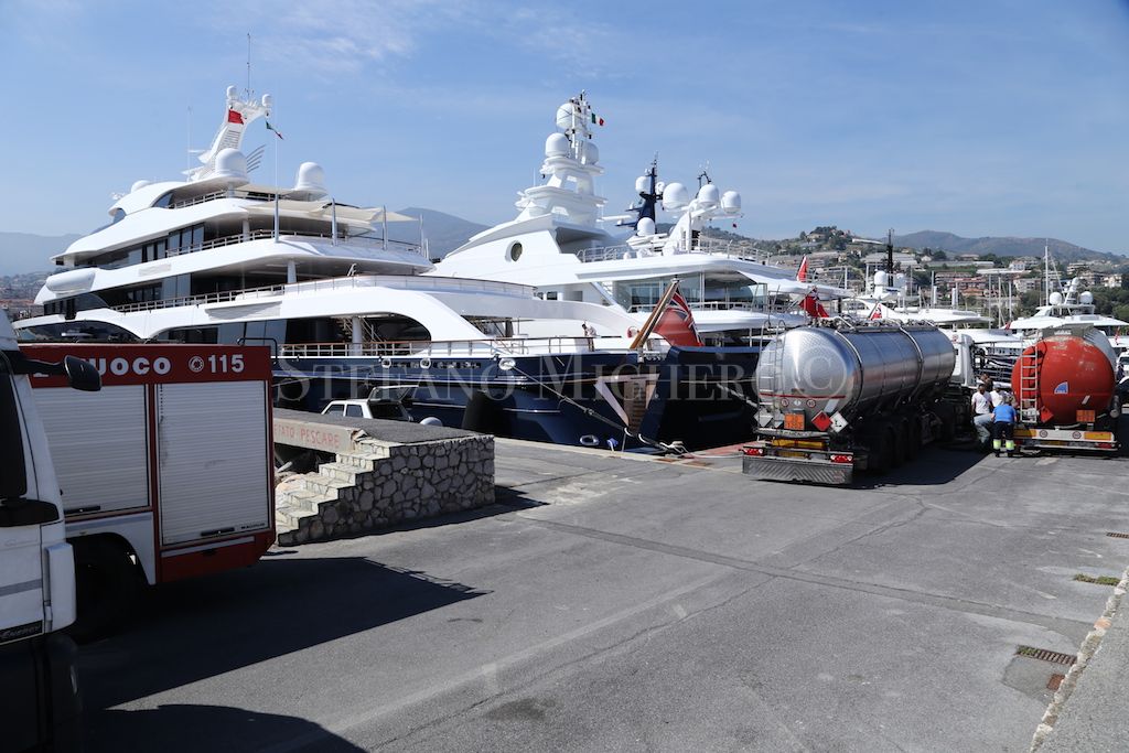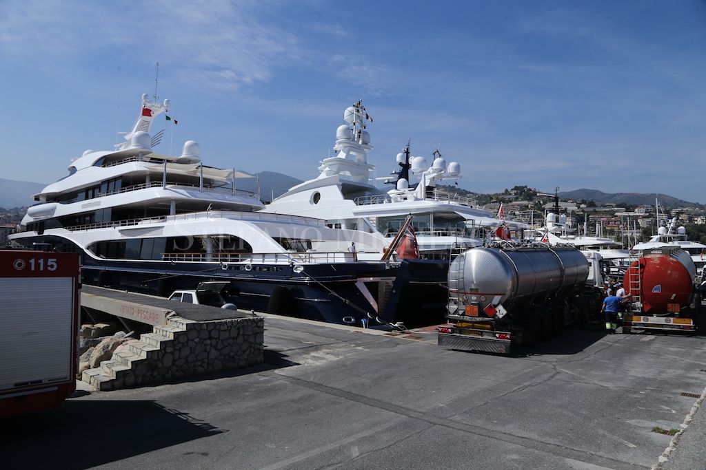 Ha funzionato perfettamente il dispositivo straordinario di sicurezza messo in atto a Portosole di Sanremo per il rifornimento dello yacht extralusso Symphony (La notizia con alcune curiosità su questa nave la trovate QUI). A causa delle grosse dimensioni dell'imbarcazione era impossibile procedere al rifornimento spostandola fino al distributore del porto.