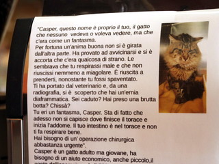 Casper, dopo il ritrovamento, è stato portato dal veterinario e da una radiografia, si è scoperto che ha un'ernia diaframmatica per la quale si è resa necessaria un’operazione urgente.