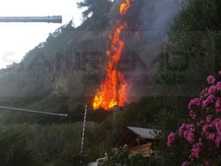 Un incendio di vaste dimensioni si è sviluppato questa sera, poco dopo le 20, poco sopra le 'Calandre' nell’immediato entroterra di Ventimiglia.