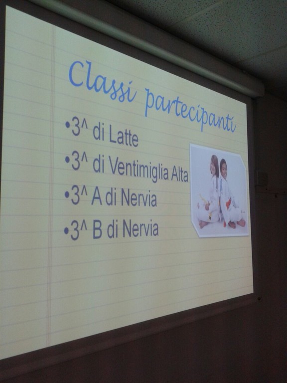 L’aula magna della Scuola Primaria di Nervia, martedì 30 maggio 2017, ha ospitato la giornata conclusiva del Progetto “Judo di Classe” organizzato per il corrente anno scolastico dallo Judo Club Ventimiglia in collaborazione con l’Istituto Comprensivo Cavour di Ventimiglia. Alla festosa giornata finale hanno preso parte oltre 60 alunni delle classi terze dei plessi di Nervia, Latte e Ventimiglia Alta che durante l’anno hanno partecipato al Progetto nato con una spiccata finalità educativa, infatti il sottotitolo era “Fai Ippon al bullismo”.