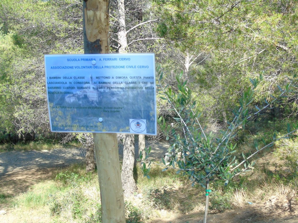 Alla festa hanno partecipato il Sindaco Gianpaolo Giordano, la delegata alla Cultura Annina Elena, Carlo Farnè della Protezione Civile cervese e le prime e le quinte della scuola primaria A. Ferrari accompagnate dal corpo insegnanti. Il Parco del Ciapà rappresenta il luogo simbolo per i piccoli residenti di Cervo della natura incontaminata che accoglie una delle più belle aree di flora e fauna affacciate sul Mare Mediterraneo della nostra Penisola.