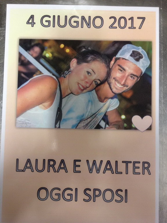I parenti e gli amici augurano agli sposi un grande giorno di festa da condividere tutti insieme. Le famiglie dei ragazzi sono certe che nella loro vita non mancheranno mai ‘Pasta e Pane’, visto che Laura è figlia dei noti gestori del Pastificio Arrigo mentre Walter ha un'avviata rivendita di alimentari e pane.