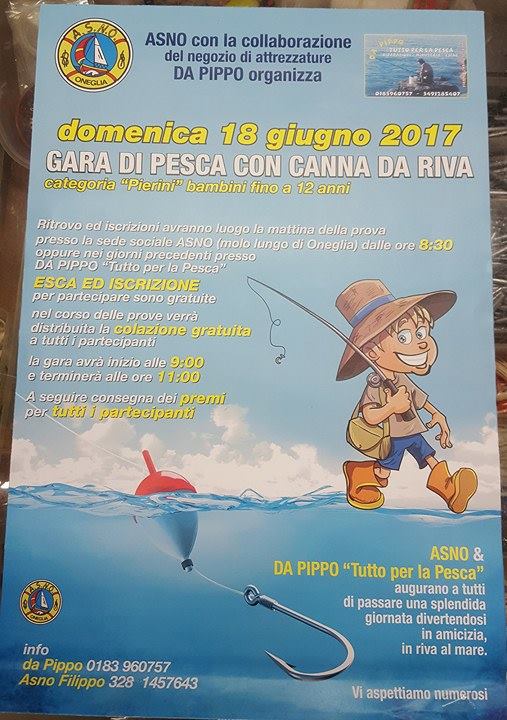 Asno, con la collaborazione del negozio di attrezzature da pesca ‘Da Pippo’, organizza per domenica 18 giugno la 'Gara di pesca con canna da riva' categoria 'Pierini'.