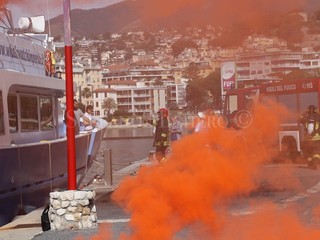 Sanremo: ecco che cosa succede quando c'è un principio d'incendio su una nave, Videoservizio nell'esercitazione e bilancio con il comandante Fronte