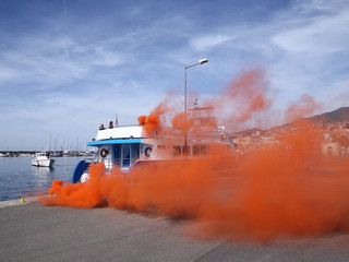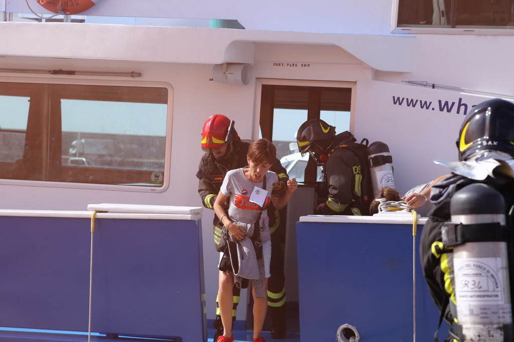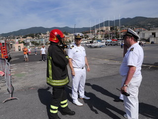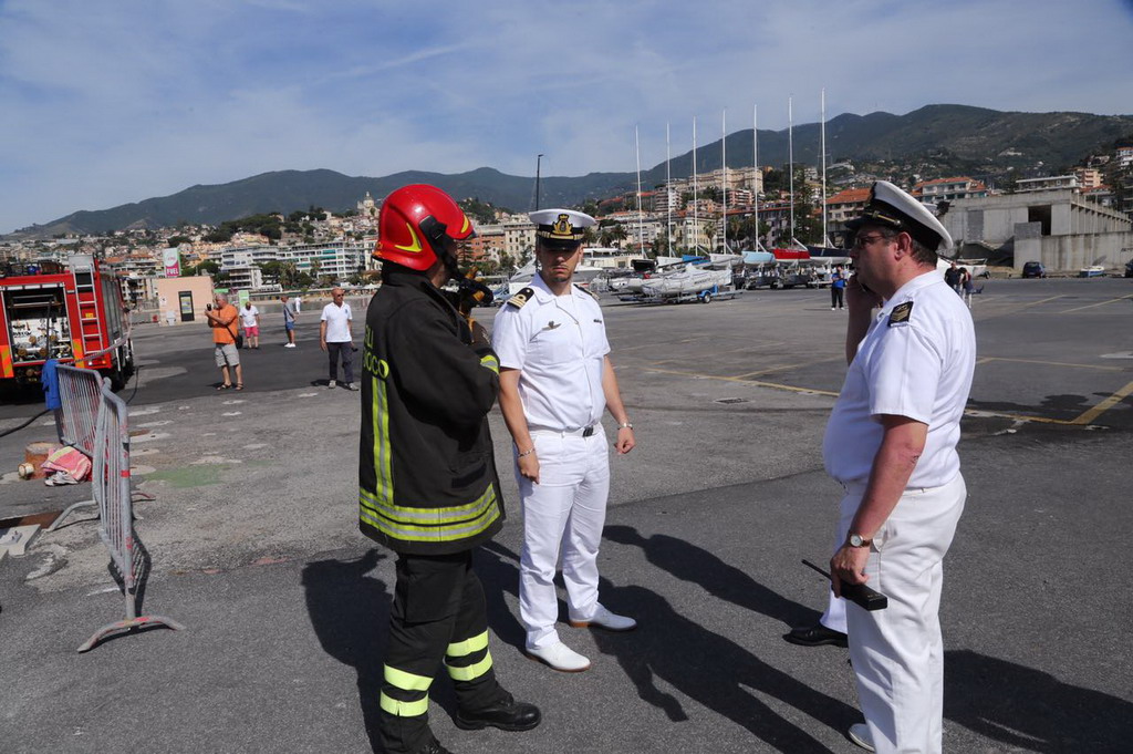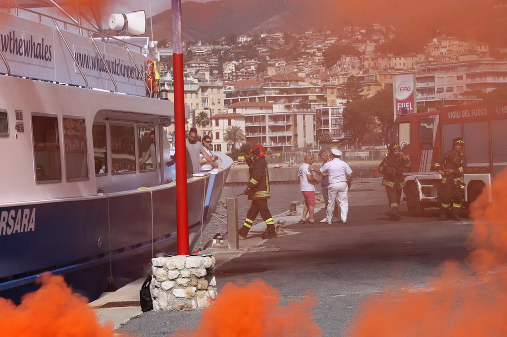 Sanremo: questa mattina a Portosole esercitazione antincendio, simulato un rogo a bordo di una barca (Foto e Video)