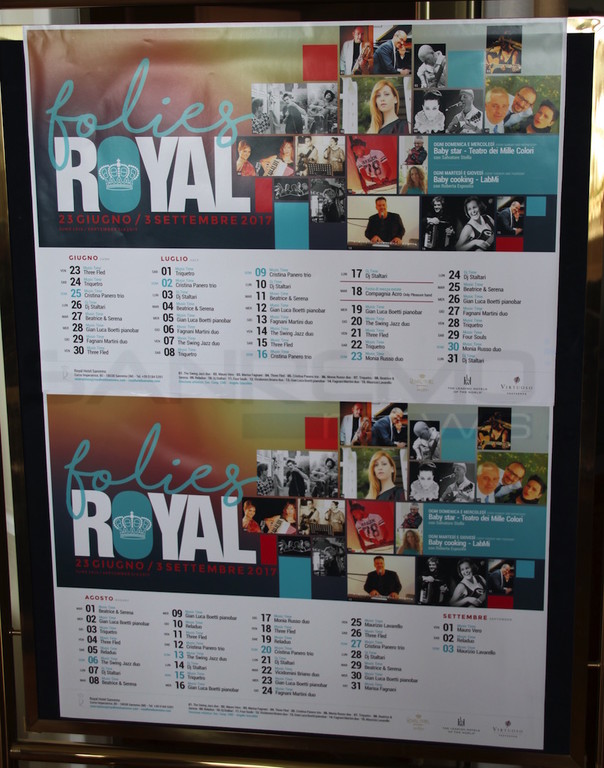 La lunga serie di eventi prenderà il via venerdì 23 con i Three Fled, ma la lunga estate del Royal proseguirà fino al 3 settembre senza pause. Musica ed eventi ogni sera. E non mancheranno gli intrattenimenti per i più piccoli. Eventi dedicati sia ai clienti del Royal che al pubblico esterno.